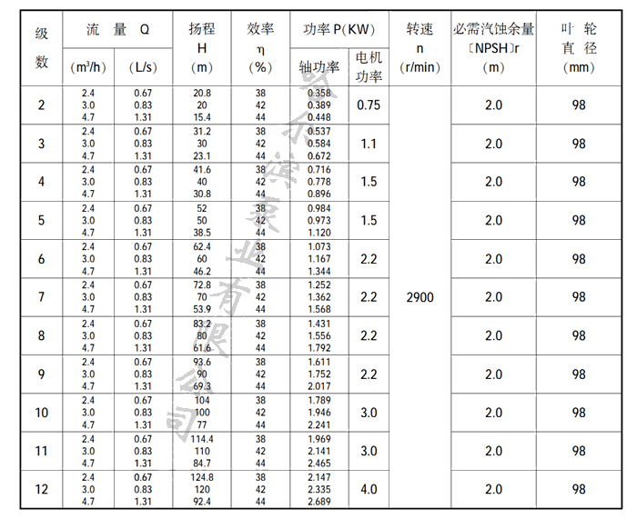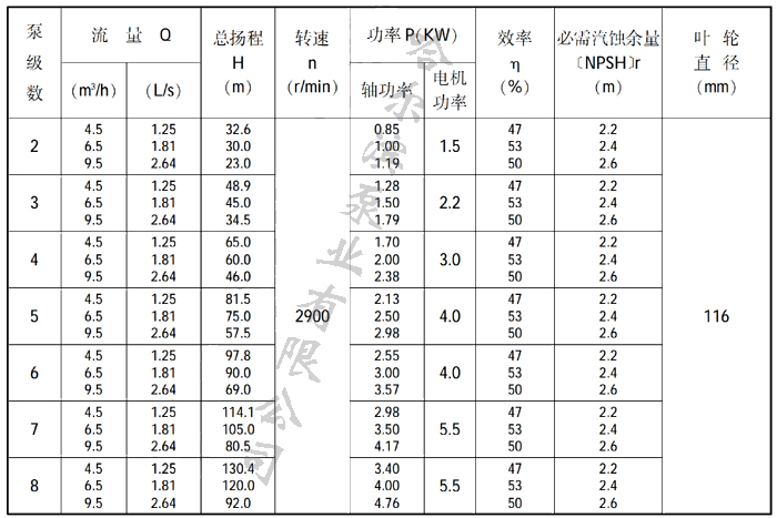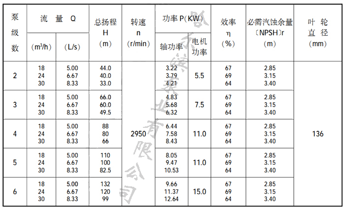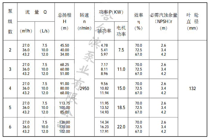 32LG型泵性能參數表