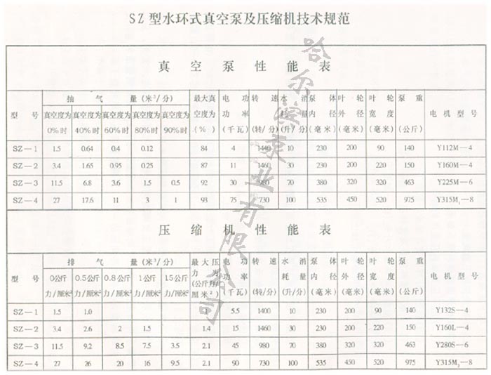 SZ-1、SZ-2型泵所形成之***大壓力為1.0-1.4公斤/厘米2。SZ-3、SZ-4型泵所形成的***大壓力為2.1公斤/厘米2,但在所配之電機下容許的******使用壓力為1.5公斤/厘米2.